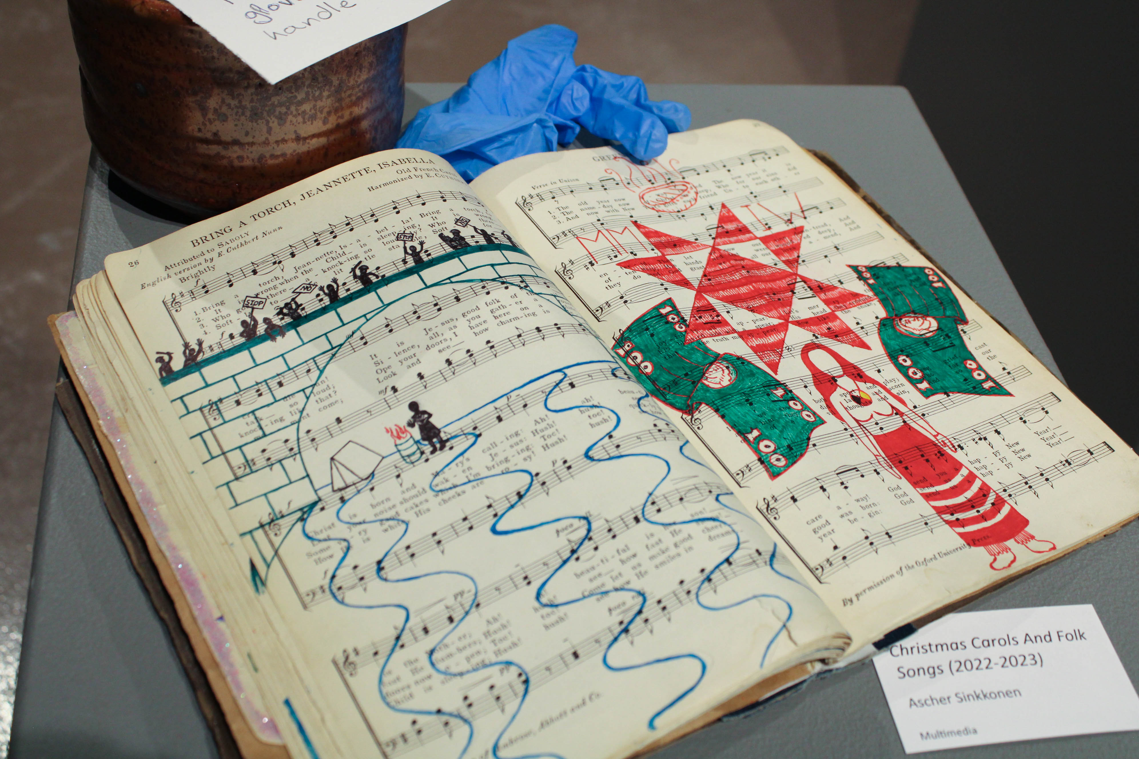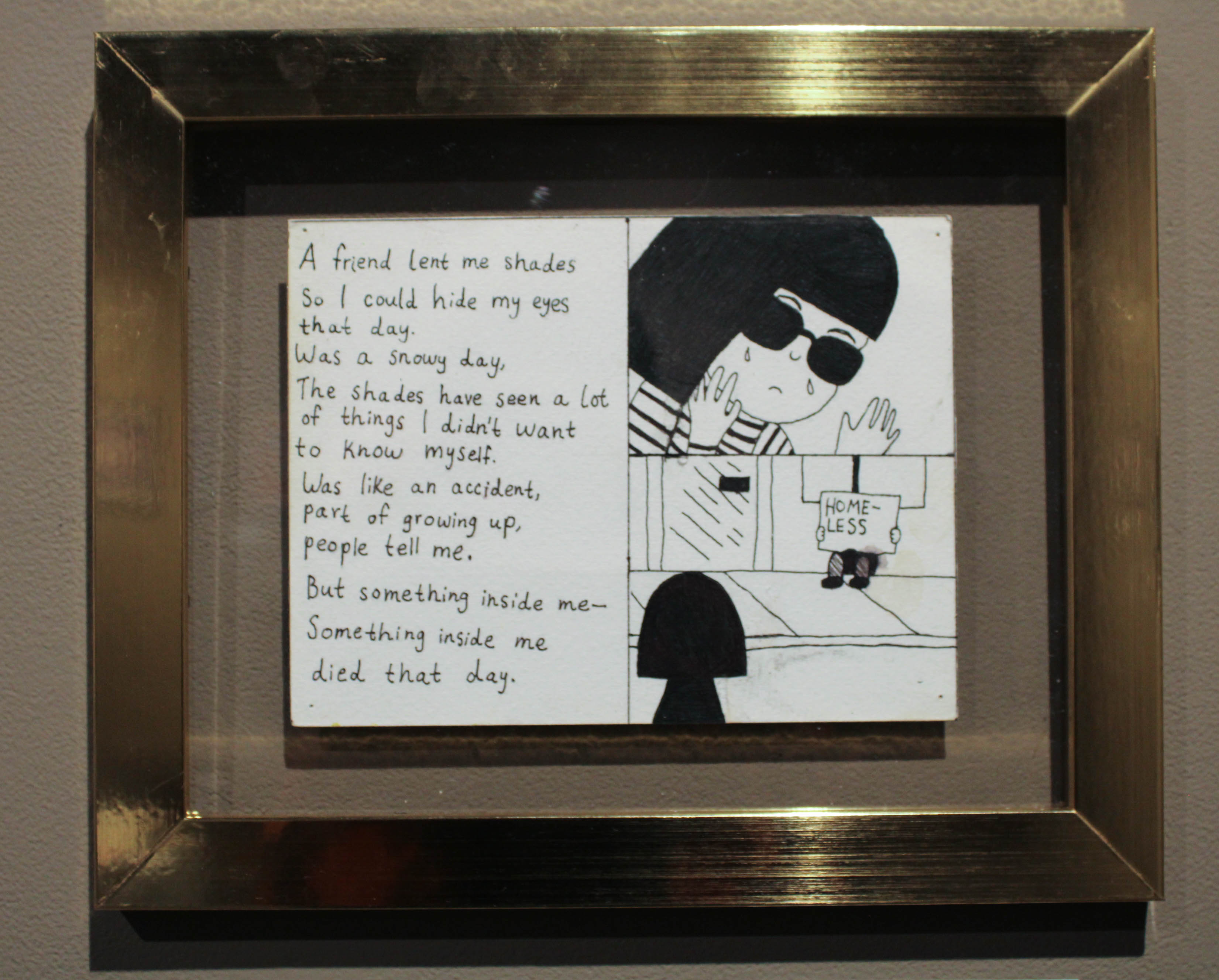 Numerous student submissions were also on display in the gallery. According to both artists, these submitted pieces have traveled with the exhibit and can be given back to artists at their request. | Photo by Drew Kerner